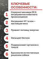 - Высокое содержание белка. Питание характеризуется высоким содержанием животного белка. Это важно, поскольку собаки, кошки, как потомки хищников, нуждаются в белках для поддержания мускулатуры, энергии, общего здоровья. Использование настоящего мяса, как основного ингредиента, помогает воспроизвести естественный рацион древних предков.