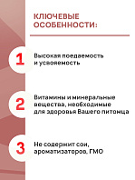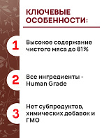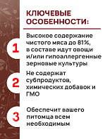 - Мясо проходит термическую обработку, поэтому готовые составы гипоаллергенны и абсолютно безопасны для домашних животных. Они хорошо усваиваются, обладают вкусовой привлекательностью, содержат огромное количество витаминов и аминокислот, необходимых для полноценного развития.