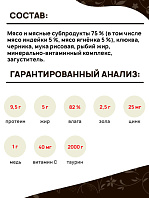 Консервы не содержат: субпродукты, злаки, глютен, гормоны, антибиотики, ГМО, сою и ароматизаторы.