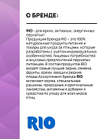 Ассортимент бренда RIO включает корма, специальные рационы, природные и оригинальные лакомства, витамины и добавки и средства по уходу для всех видов птиц. Всё для того, чтобы сделать жизнь птицы насыщенной̆ и доставить ее владельцу много ярких эмоций и удовольствие от общения с питомцем.