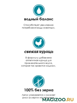 Рацион предназначен для предотвращения образования камней мочевого пузыря благодаря низкому содержанию магния, кальция и фосфора и обеспечению умеренно кислого рН мочи кошки.