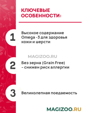 - Без зерна (Grain Free) – снижен риск аллергии.