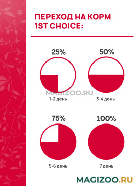 Сухие корма для питомцев 1ST CHOICE позиционируются как соответствующие природным потребностям животных, содержащие натуральные ингредиенты и растительные экстракты. Компания-производитель называет себя одной большой семьей, а формулы кормов – «семейными рецептами».