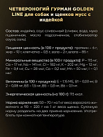 ЧЕТВЕРОНОГИЙ ГУРМАН GOLDEN LINE мусс для собак и щенков с 1 месяца – это влажный корм суперпремиум класса, в составе которого только мясо и сливочный соус.