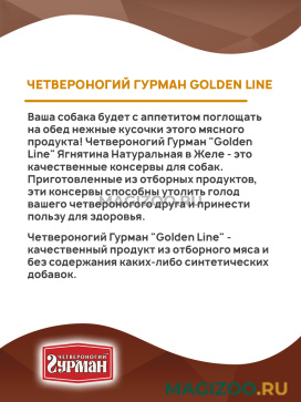 Четвероногий Гурман "Golden Line" - качественный продукт из отборного мяса и без содержания каких-либо синтетических добавок.