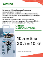 Специально подобранный размер гранул наполнителя позволяет обеспечить максимальный комфорт и удобство для пушистого питомца и его хозяина. Природные сорбенты активно впитывают жидкость, не прилипают к шерсти и абсолютно безопасны.