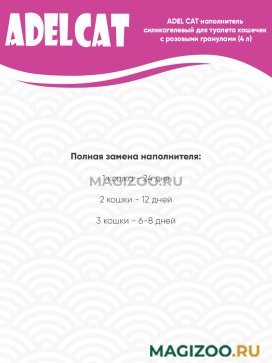 Силикагелевый наполнитель ADEL CAT обладает мощной впитывающей способностью и эффективно удерживает запах.
