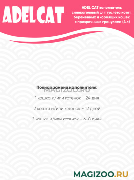 Силикагелевый наполнитель ADEL CAT обладает мощной впитывающей способностью и эффективно удерживает запах.