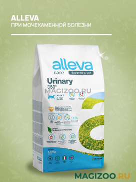 Alleva Care Urinary 360° — это полнорационный сухой диетический корм для взрослых кошек, предназначенный для растворения струвитных камней и предотвращения их рецидивов. Он также показан для поддержания здоровья мочевыводящих путей в случаях заболевания нижних отделов мочевыводящих путей кошек и кошачьего урологического синдрома.