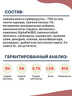 Корм также содержит комплекс растительных компонентов - фитонутриентов с высоким содержанием полифенолов, способных ограничивать окислительный стресс во всех системах организма, а экстракт мелиссы лекарственной способствует снижению возбудимости и стресса у собак.