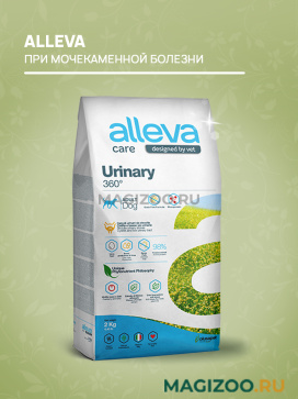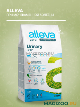 Alleva Care Urinary 360° — это полнорационный сухой диетический корм для взрослых собак, предназначенный для растворения струвитных камней и предотвращения их рецидивов, а также для поддержания здоровья нижних мочевыводящих путей.