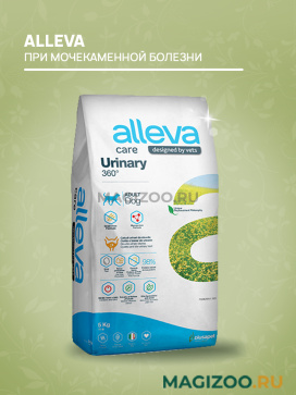 Alleva Care Urinary 360° — это полнорационный сухой диетический корм для взрослых собак, предназначенный для растворения струвитных камней и предотвращения их рецидивов, а также для поддержания здоровья нижних мочевыводящих путей.