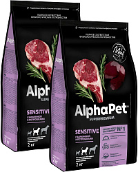 Сухой корм ALPHAPET SUPERPREMIUM SENSITIVE для взрослых собак средних пород с чувствительным пищеварением с бараниной и потрошками (2 кг)