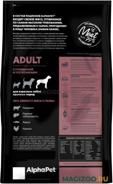 ALPHAPET SUPERPREMIUM ADULT – сухой сбалансированный корм для собак с 1,5 до 5 лет и весом от 26 кг.