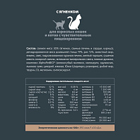 Добавленные вещества: магний - 0,08 %, медь - 6 мг/кг , железо - 84 мг/кг, марганец – 6,9 мг/кг, цинк - 180 мг/кг , йод - 1,4 мг/кг, селен - 350 мкг/кг, таурин - 1 277 мг/кг, витамин А - 15 000 МЕ/кг, витамин D - 1 200 МЕ/кг, витамин Е - 100 МЕ/кг, витамин В1 – 5,95 мг/кг, витамин В2 -4,3 мг/кг, витамин B6 – 2,66 мг/кг, ниацин – 42,7 мг/кг, пантотеновая кислота – 14,2 мг/кг, холин - 2 716 мг/кг, биотин - 100 мкг/кг, фолиевая кислота – 801,5 мкг/кг, хондроитин - 98 000 мкг/кг, глюкозамин - 28 000 мкг/кг, DL-метионин+цистеин – 8,8 г/кг.