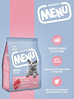 Сухой полнорационный корм AlphaPet Menu для взрослых кошек с говядиной.