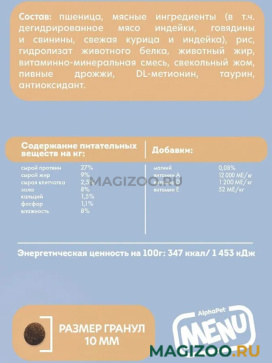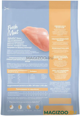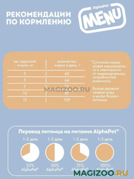 Сухой полнорационный корм AlphaPet Menu для взрослых кастрированных котов и стерилизованных кошек с домашней птицей.