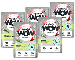 Влажный полнорационный корм AlphaPet Superpremium для взрослых кастрированных котов и стерилизованных кошек с анчоусами и креветками в соусе.