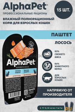 Влажный полнорационный корм для кошек паштет с лососем AlphaPet Superpremium.