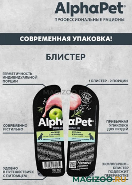 Влажный полнорационный корм AlphaPet Superpremium для собак с чувствительным пищеварением с кроликом и яблоком в соусе.