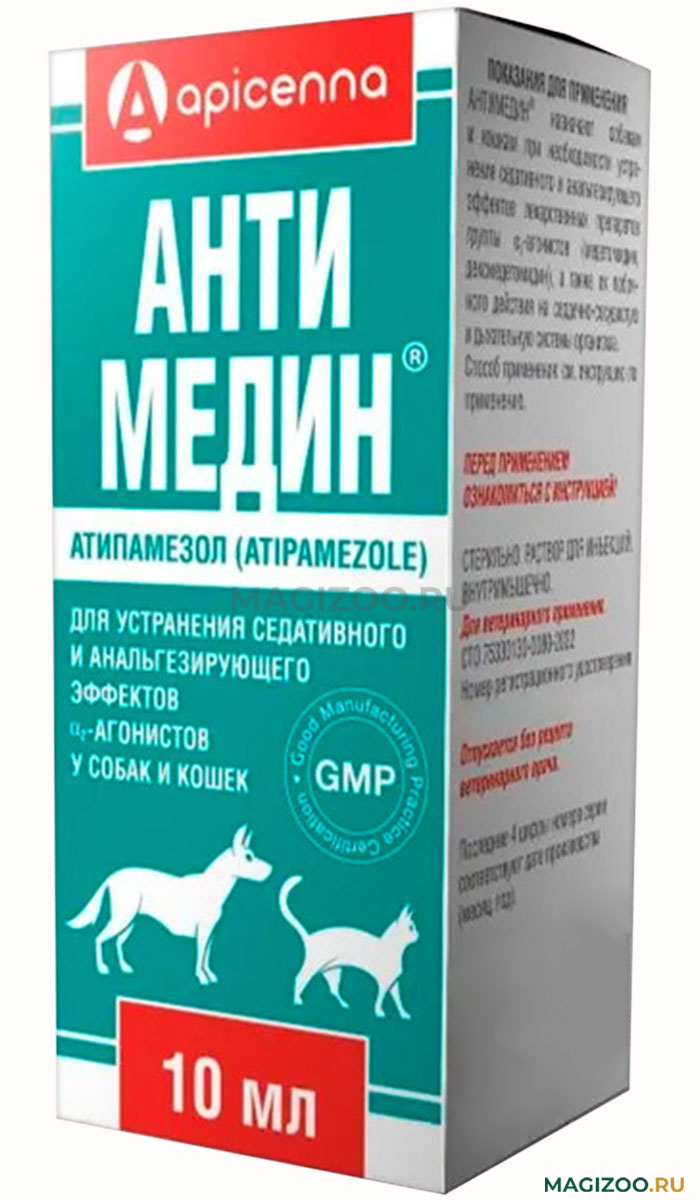 Антимедин применяют с целью устранения седативного и анальгезирующего действия ?2-агонистов у собак и кошек, а также при необходимости устранения побочного действия ?2-агонистов на сердечно-сосудистую и дыхательную системы. Антимедин применяют через 15 – 60 минут после ?2-агонистов. Обычно седативное действие медетомидина или дексмедетомидина снимается в течение 5 – 10 минут.