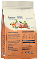 Дегидрированная индейка – 29 %, бурый рис, гидролизованное мясо и печень индейки – 10 %, овсяные хлопья, жир индейки - 9,5 %, яйцо сушеное цельное - 3 %, гороховый белок, растительная клетчатка, морковь, пивные дрожжи, белки плазмы (источник иммуноглобулинов), семена льна, лососевое масло - 1,4 %, DL-метионин, маннаноолигосахариды (MOS), фруктоолигосахариды (FOS), клюква, минералы, витамины, таурин, гемоглобин, экстракт юкки Шидигера, экстракт зеленого чая, хлорелла, смесь токоферолов и экстракта розмарина.