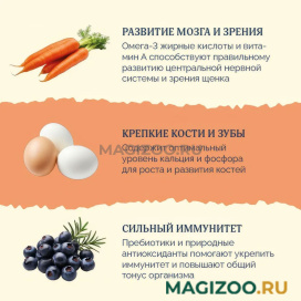 Корм отвечает всем физиологическим потребностям питомца, разработан специально для щенков.