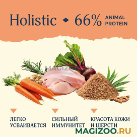 - Гипоаллергенный – один вид мяса в составе, отсутствие курицы и глютена минимизирует риск развития аллергической реакции у питомца.