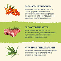 - Качественный белок – мясо ягнёнка богато жирами, аминокислотами и витаминами для здоровой жизни питомца.