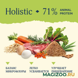 Корм отвечает всем физиологическим потребностям питомца, разработан специально для собак с чувствительным пищеварением.