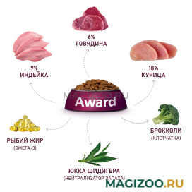 AWARD - это не просто корм, это функциональные рецептуры, которые работают. Выбирая AWARD, Вы выбираете осознанный подход к питанию Вашего питомца!
