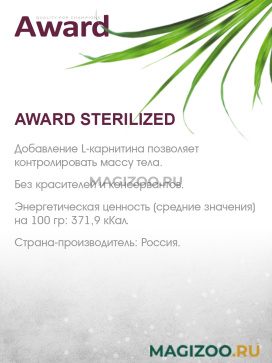 AWARD - это не просто корм, это функциональные рецептуры, которые работают. Выбирая AWARD, Вы выбираете осознанный подход к питанию Вашего питомца!