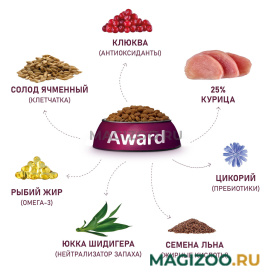 AWARD - это не просто корм, это функциональные рецептуры, которые работают. Выбирая AWARD, Вы выбираете осознанный подход к питанию Вашего питомца!
