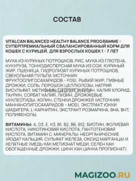 Vitalcan Balanced Healthy Balance Programme - суперпремиальный сбалансированный корм для кошек с курицей. Для взрослых кошек 1 - 7 лет.