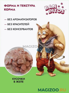 Влажный корм Banditos с курицей в желе — не десерт, не просто угощенье для кошек, а полноценный рацион.