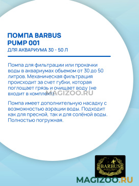Особенности помпы: для пресноводных аквариумов, тихий, полностью погружная, аэрация, фильтрация.