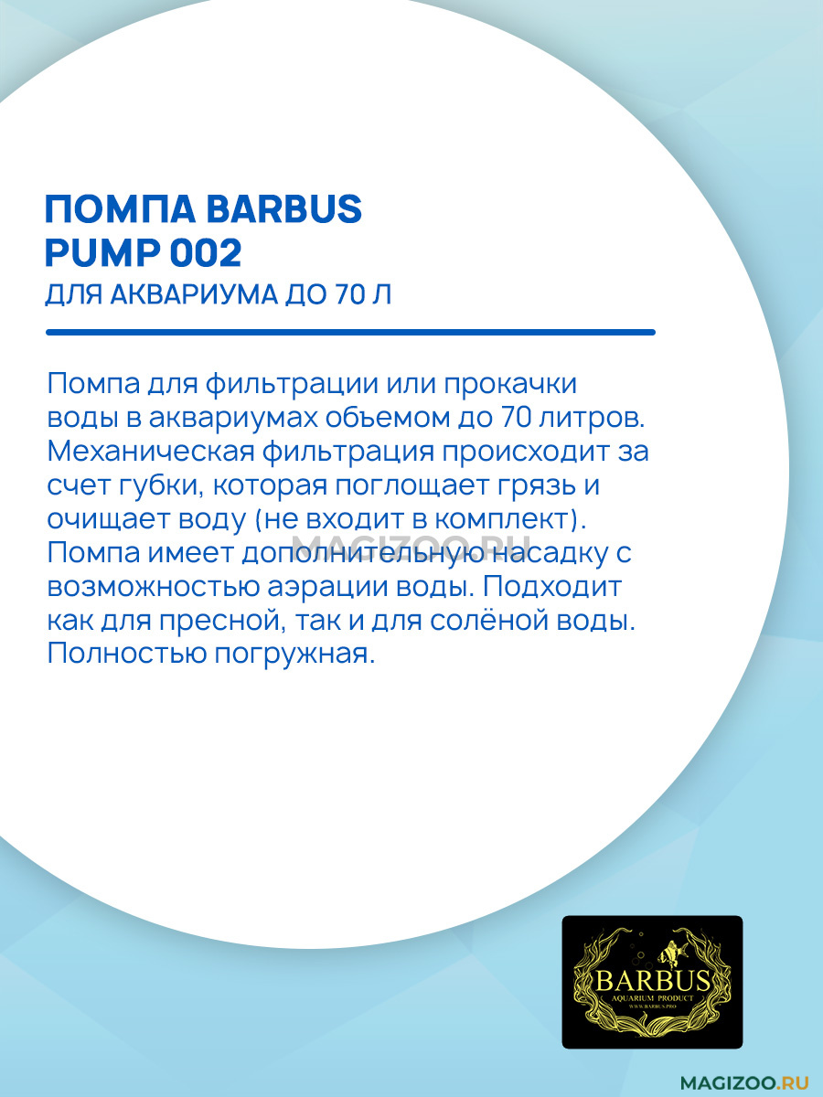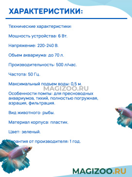 Особенности помпы: для пресноводных аквариумов, тихий, полностью погружная, аэрация, фильтрация.