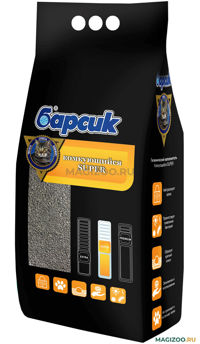 Гигиенический наполнитель Барсик Комкующийся SUPER - изготовлен из высококачественного активированного бентонита, максимально быстро поглощает неприятные запахи эффективно впитывать влагу, и образовывает плотные комочки, легко удаляемые из общей массы, что делает его более экономичным.