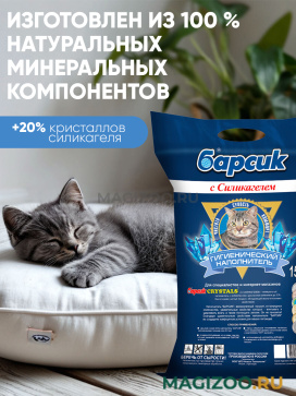 Информация о составе и ингредиентах, цветовом решении, технических и иных характеристиках, стране-изготовителе, внешнем виде и комплекте поставки товара носит справочный характер и основана на последних доступных к моменту публикации сведениях. Доставка данного товара осуществляется во все регионы РФ.Наполнитель бренда БАРСИК появился на Российском рынке в 1998 году и на данный момент уверенно занимает лидирующие позиции. В ассортименте торговой марки БАРСИК большой выбор наполнителей разных типов для кошачьих туалетов. Производство не стоит на месте и постоянно усовершенствуется, что положительно отражается как на упаковке продукта, так и на его потребительских свойствах.