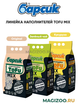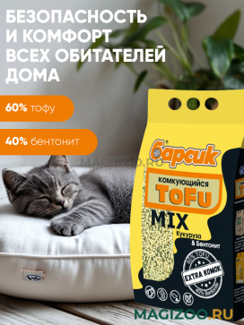 Гигиенический наполнитель Барсик "ТОФУ" МИКС Кукуруза и Бентонит" – высококачественный натуральный комкующийся наполнитель для кошачьего туалета на основе растительных волокон с приятным ароматом молодой кукурузы и природного минерала - бентонита.