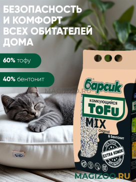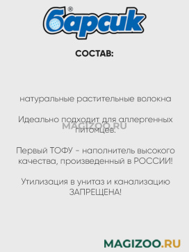 Гигиенический наполнитель Барсик "ТОФУ" МИКС Оригинальный и Бентонит" – высококачественный натуральный комкующийся наполнитель для кошачьего туалета на основе растительных волокон и природного минерала - бентонита.
