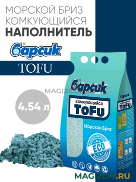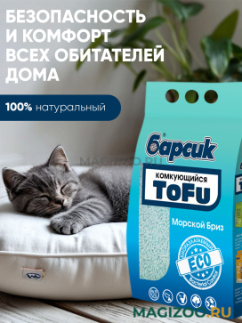Гигиенический наполнитель Барсик "ТОФУ" Морской Бриз" – высококачественный натуральный комкующийся наполнитель для кошачьего туалета на основе растительных волокон, с освежающим ароматом летнего морского бриза.