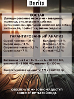 Корма Berita разработаны и созданы на новейшем оборудовании «EAGLE Extruder LTD» (двухшнековый экструдер) по последним технологиям, учитывая отзывы ветеринаров и кинологов РФ.