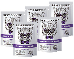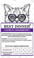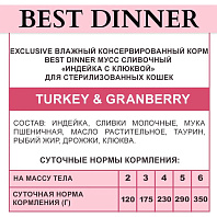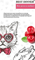 BEST DINNER EXCLUSIVE с уткой и клюквой – это крупные волокна мяса в желе для взрослых кастрированных котов и стерилизованных кошек для профилактики мочекаменной болезни.