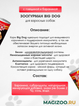 Консервы ЗООГУРМАН BIG DOG обеспечивают Вашего питомца необходимым запасом энергии для активной жизни.