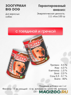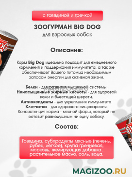 Корм Big Dog идеально подходит для ежедневного кормления и поддержания иммунитета, а так же обеспечивает Вашего питомца необходимым запасом энергии для активной жизни.