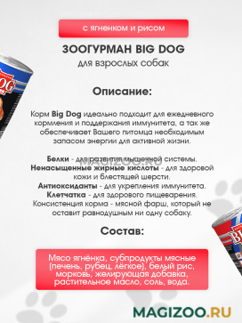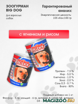 Корм Big Dog идеально подходит для ежедневного кормления и поддержания иммунитета, а так же обеспечивает Вашего питомца необходимым запасом энергии для активной жизни.