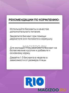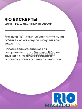 Бисквиты RIO - это вкусная и питательная добавка к основному рациону для всех видов птиц.