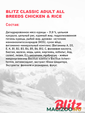 Информация о составе и ингредиентах, цветовом решении, технических и иных характеристиках, стране-изготовителе, внешнем виде и комплекте поставки товара носит справочный характер и основана на последних доступных к моменту публикации сведениях. Доставка данного товара осуществляется во все регионы РФ.BLITZ соответствует по своему качеству зарубежным кормам суперпремиум-класса.