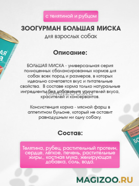 БОЛЬШАЯ МИСКА - универсальная серия полноценных сбалансированных кормов для собак всех пород и размеров, в которых идеально сочетается вкус и питательные свойства. В составе корма только натуральные ингредиенты без добавления усилителей вкуса, красителей и консервантов.